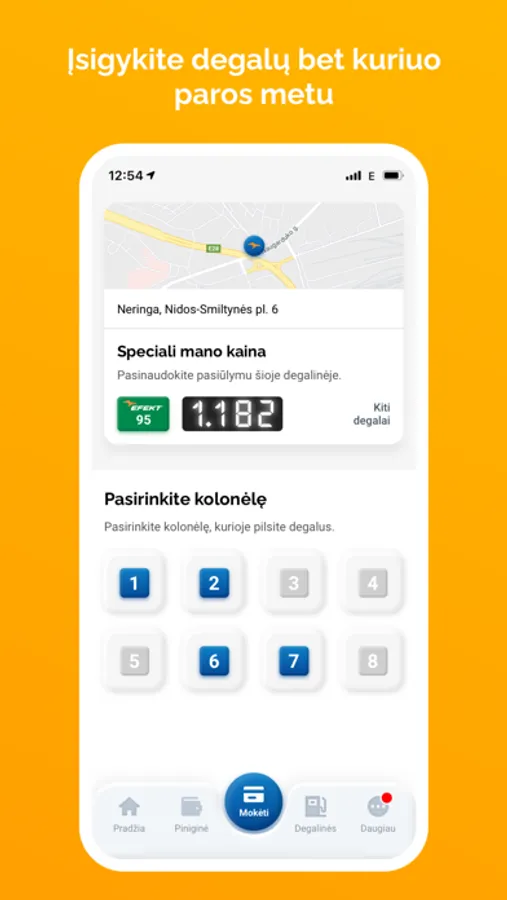 Pasirinkite kolonėlės numerį, kurioje pylėtės degalų;