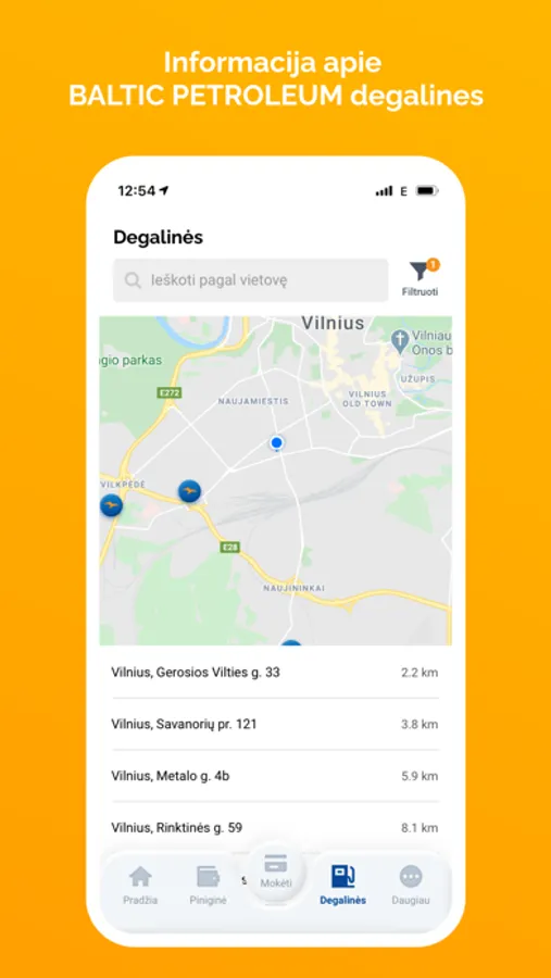 Programėlėje integruotas žemėlapis padės greitai ir patogiai rasti artimiausią BALTIC PETROLEUM degalinę ir informaciją apie joje teikiamas paslaugas, degalų rūšis bei darbo laiką.