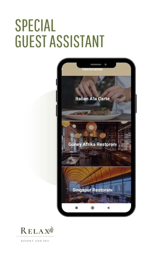 Welcome to Relax Resort Hotel, with our mobile app you can send us your mobile check-in, restaurant booking, towel to your room, a nice dinner, room service, taxi or any other request directly. We plan to give you a magnificent accommodation experience with our hotel's strong customer satisfaction. We provide the best experience for our guests.