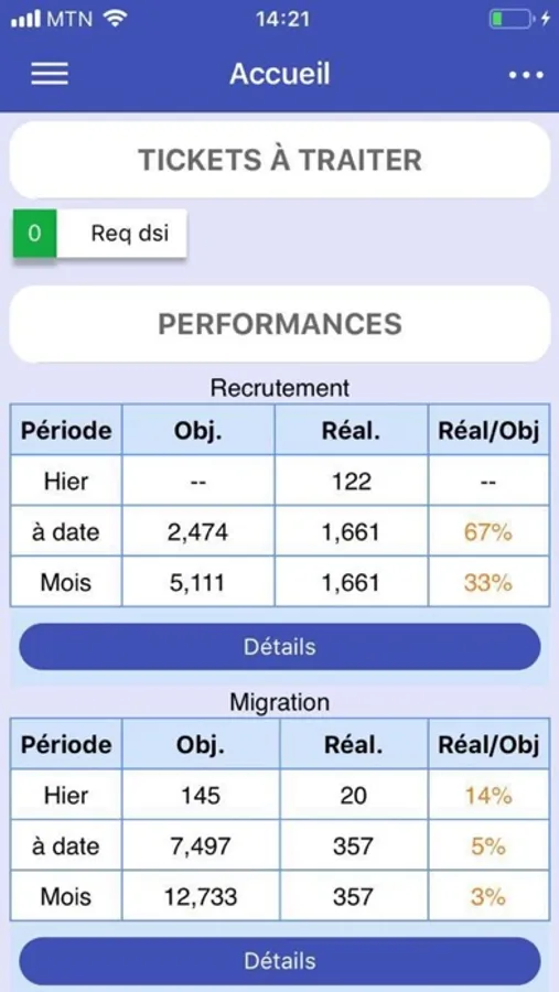 - la consultation en temps réel des performances par KPI pour les équipes mobiles VAD & FVI