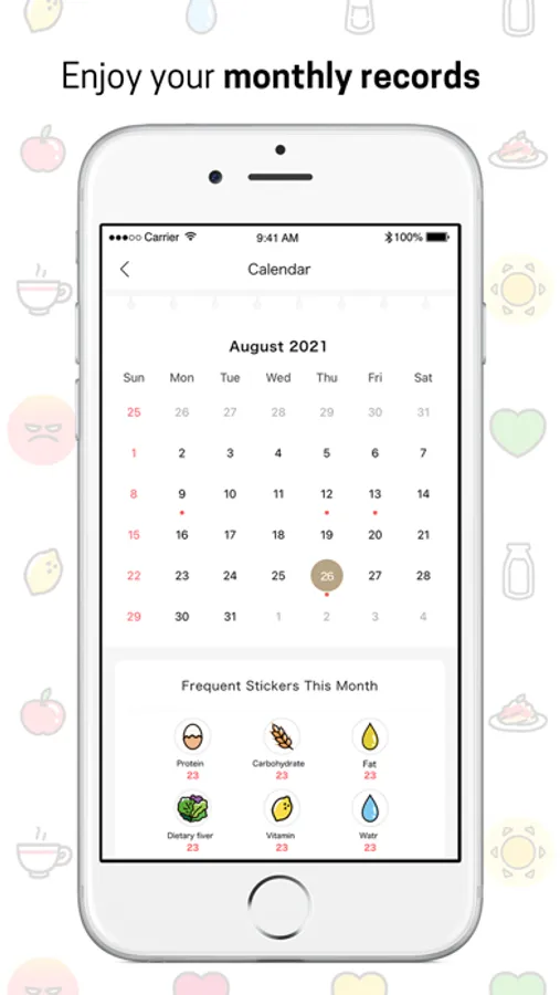 You can check what, how and the amount you have eaten for the month through a calendar!