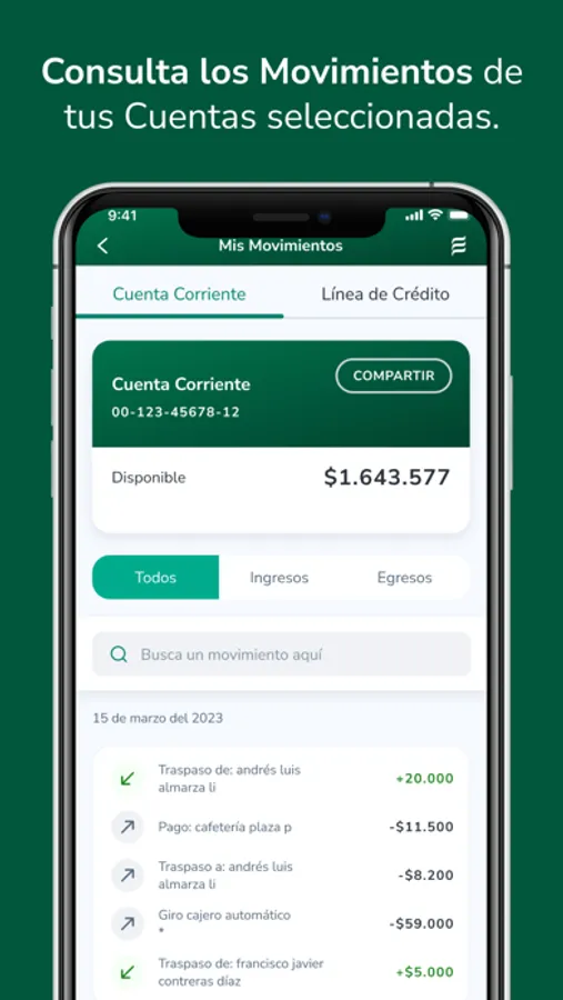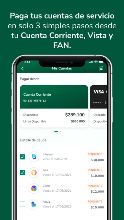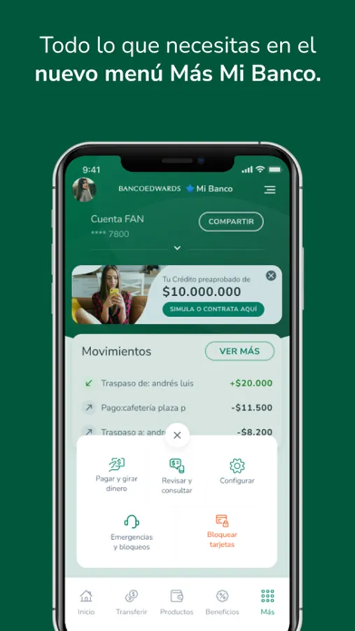 Consulta el saldo y últimos movimientos de tus cuentas y tarjetas de crédito, transfiere a terceros, paga tus tarjetas y el monto utilizado en tu línea de crédito. Ademas, podras pagar tus cuentas de servicio