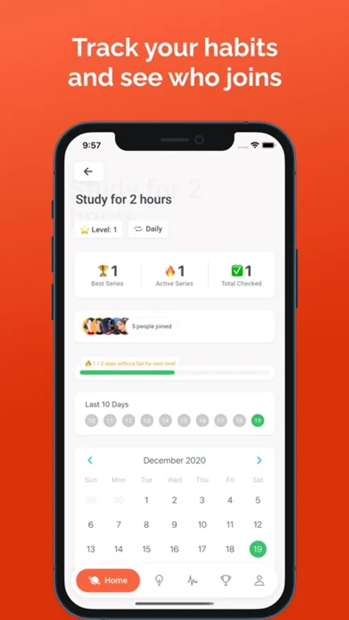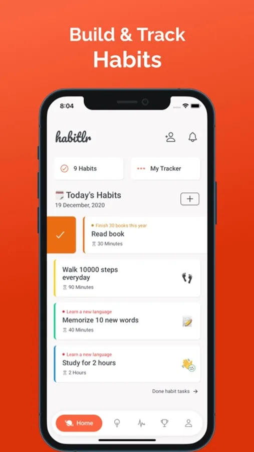 - With Habitlr you are able to create daily or weekly habits and track them.