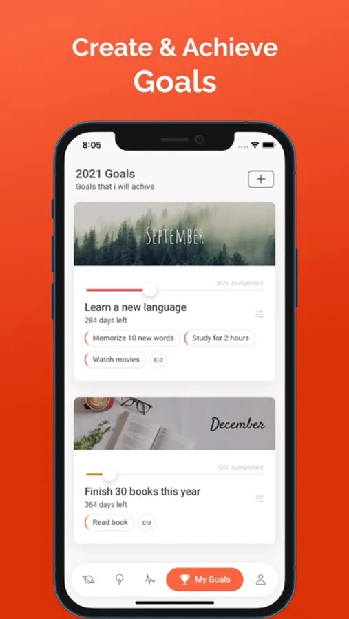 - Habitlr has a great feature about goals! Setting main goals makes easier to build habits.