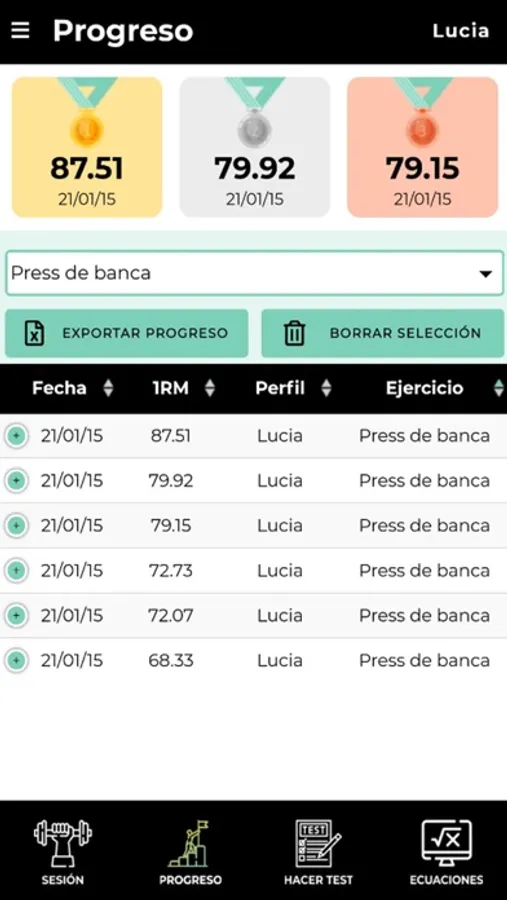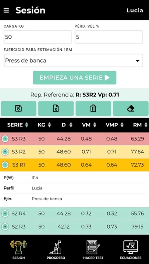 - Estimación del 1RM por ecuaciones genéricas y por curva personalizada F-V