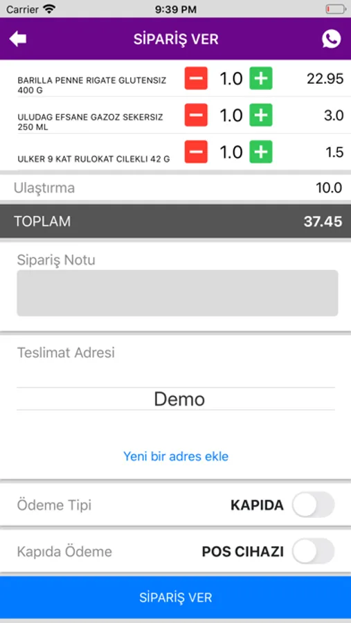 Siz güvende kalın, siparişleriniz kapınıza kadar gelsin. Cep telefonunuzdan kolayca ürün siparişin verdin, güvenle ödeyin.