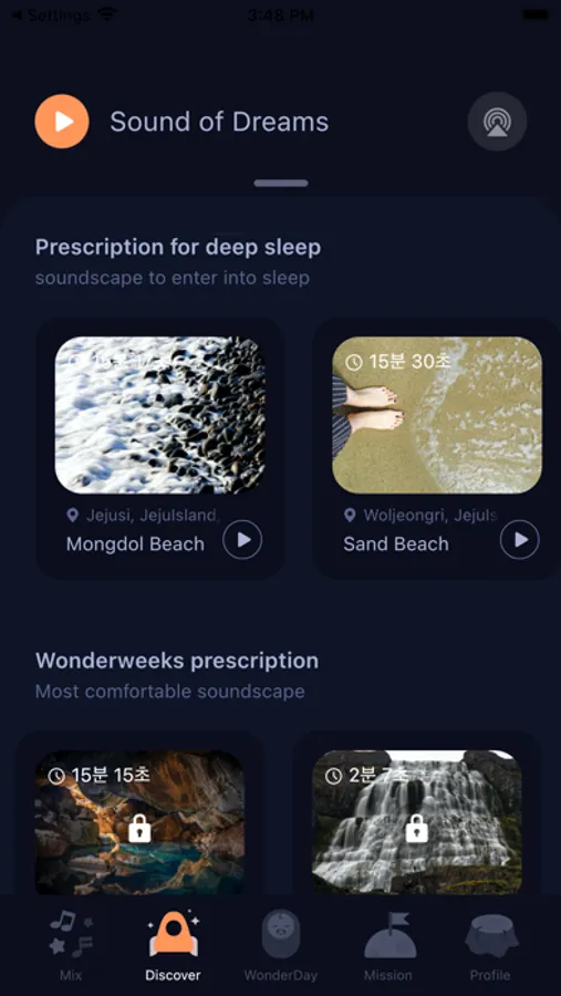 * Nature sounds: waterfall, wave, river, seaside, underwater