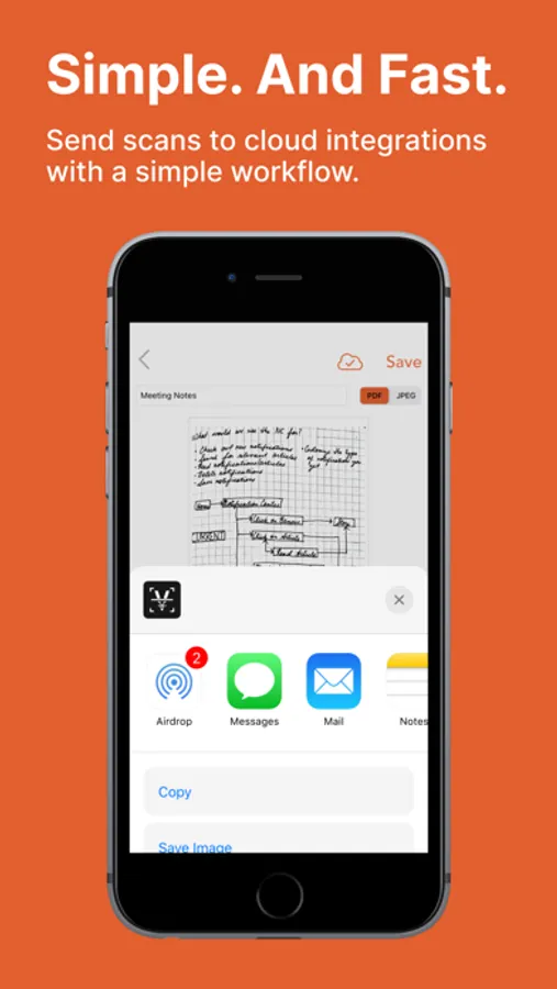 #3 Save or Share: Once your scan is captured, save it to your camera roll or share it with friends, family, or colleagues in seconds. Choose to export your scan as a PDF or a JPG.