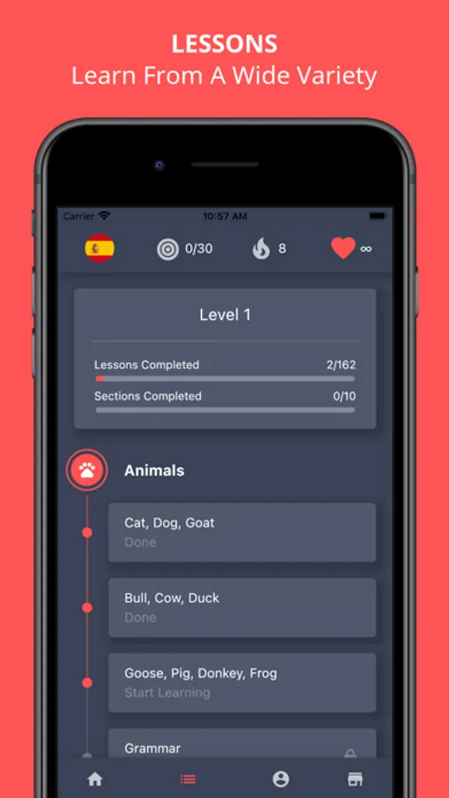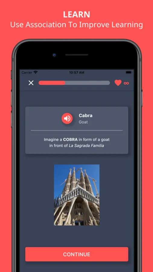 This ground breaking app lets you use proven brain tricks to learn a new language or even multiple new languages up to 3 times faster than in most schools, universities or other programs/apps.