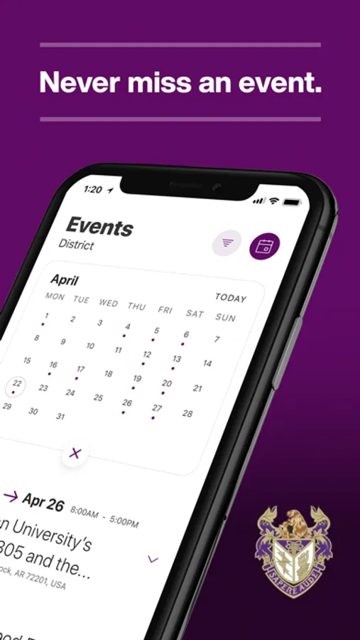 The event section shows a list of events throughout the district. Users can add an event to your calendar to share the event with friends and family with one tap.