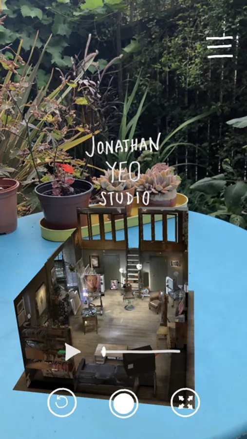 Reversing the standard Augmented Reality device of overlaying a 3D object in your physical space, here the space itself becomes the object. This is a unique opportunity to glimpse the artist’s working methods, watch a brand new type of portrait practice, and hear some of the intimate and entertaining conversation which ensues. It also allows the user to freely move around the space and record their own photos and videos as if they were in the real studio.