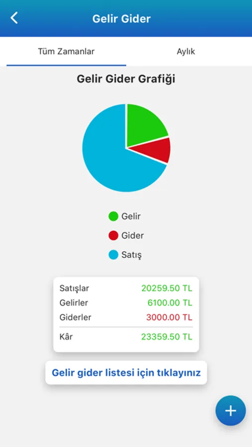 - Gelir gider ekranı ile gelir ve giderlerinizi girebilirsiniz. Bu sayede sistemden direk kâr toplamını görebilirsiniz.