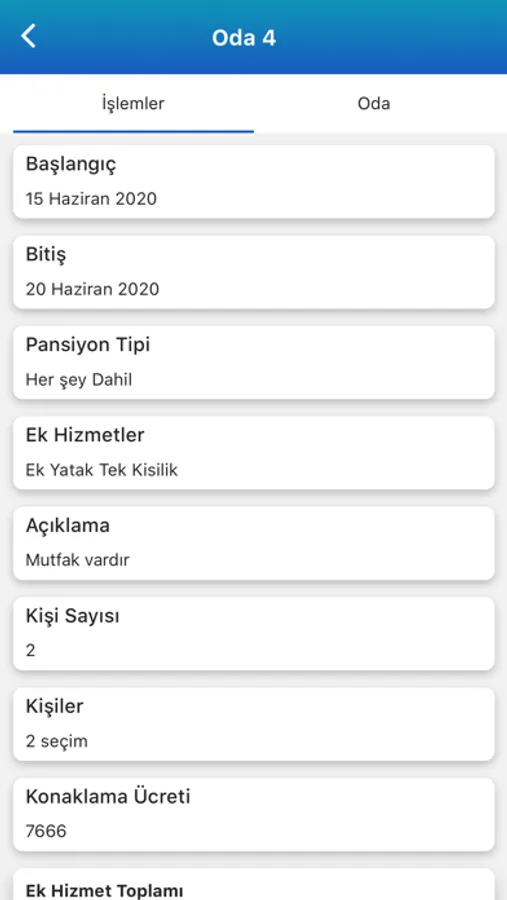 - Oda rezervasyonlarınızı yönetebilirsiniz.