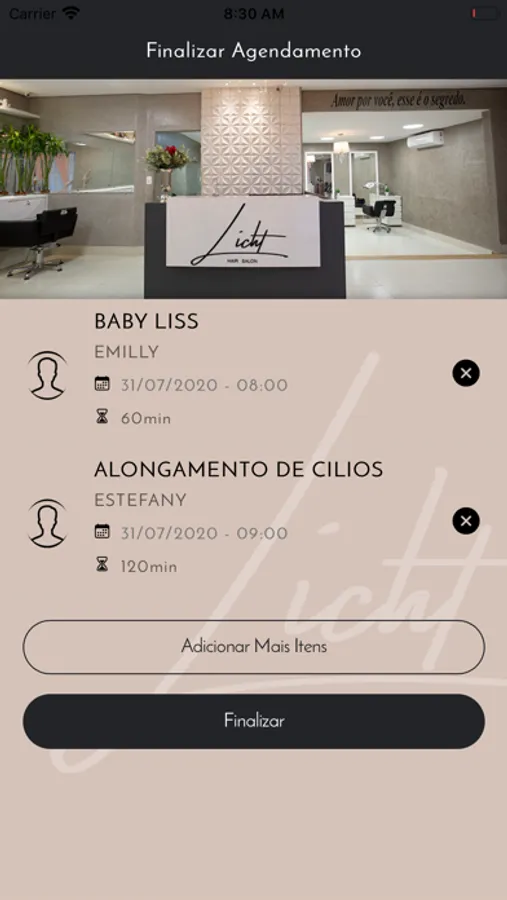 Não perca tempo ligando no salão para marcar o serviço desejado. Baixe o nosso app, consulte o serviço que deseja e marque você mesmo de acordo com a agenda disponível. Muito mais praticidade e agilidade para você.