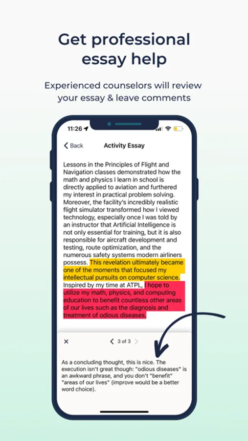 When you upload your college essay to Wend and request a review, a real college counselor will read it and provide you with feedback. You can submit any college application essay for review, no matter the word count or prompt.