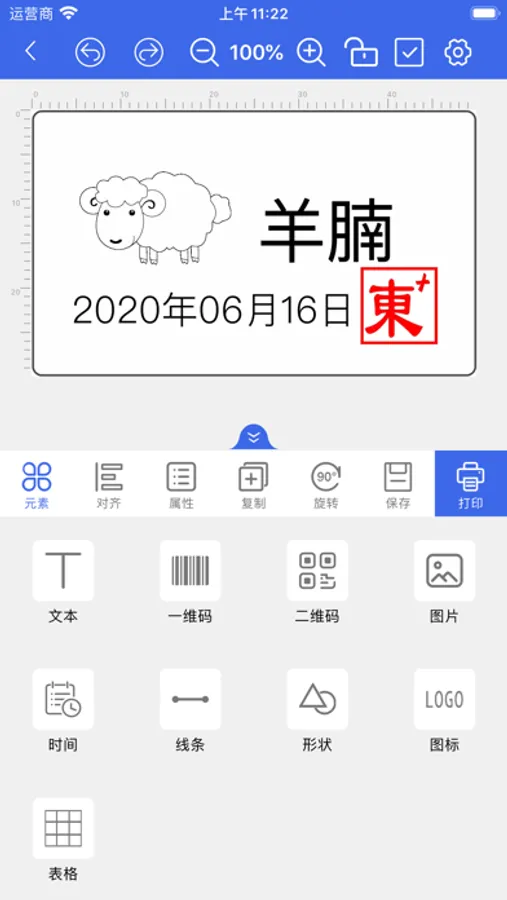 5、标签模板 支持 一维码 / 文本 / 二维码 / 图片 / 表格 / 线 / 框 等