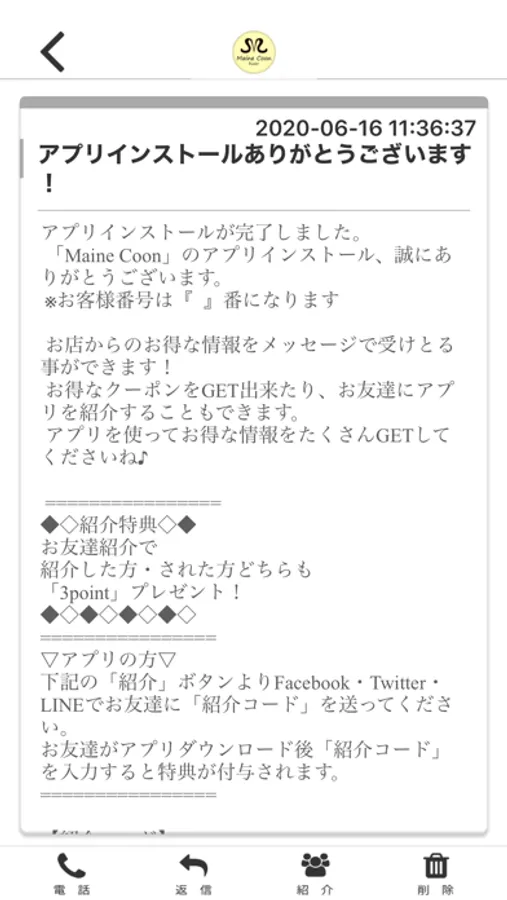 Maine CoonのアプリをSNSを通じてお友達に紹介する事ができます。