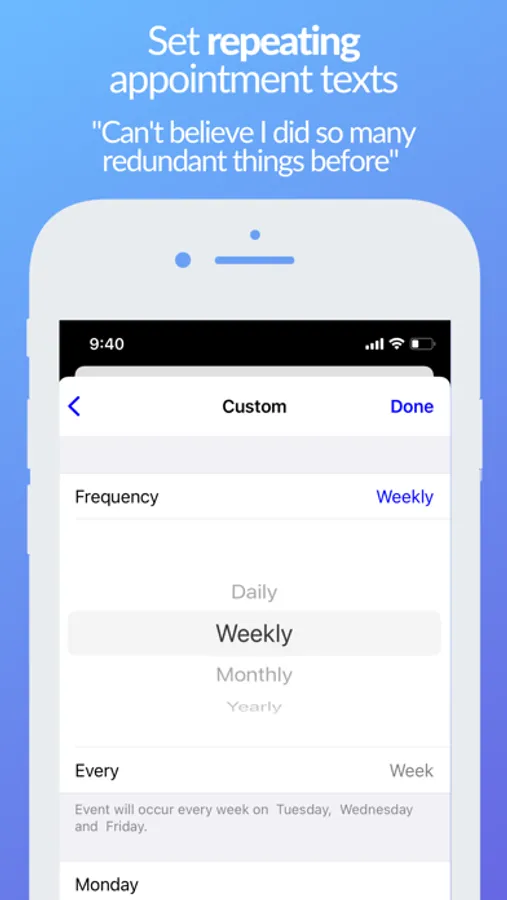 • Schedule repeating messages to be automatically sent at the dates you select,