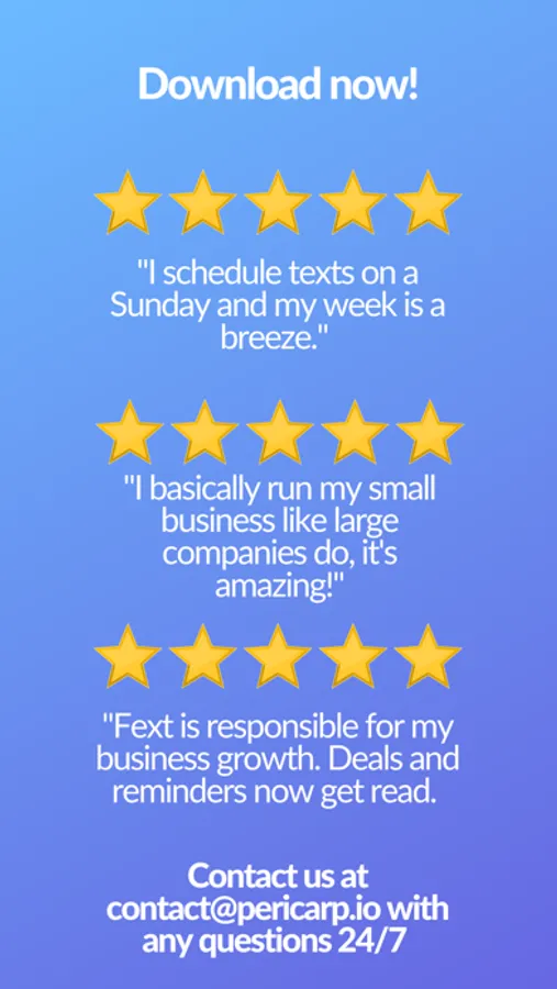 "I've been trying to grow my business and it's been a headache to reach people on social media. I already have their phones saved to I've been looking for a way to use this to my advantage. I tried other apps but they only send notifications to you to send the text, what good use is that?? Others send a text or two, but my customers say they never received them. With Fext I schedule all my marketing and deals as well as appointments and they are always delivered on time. Love it!"