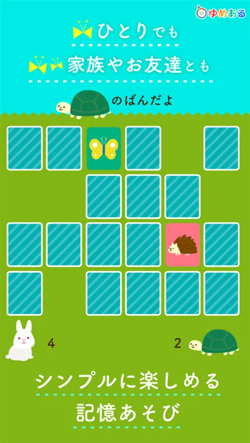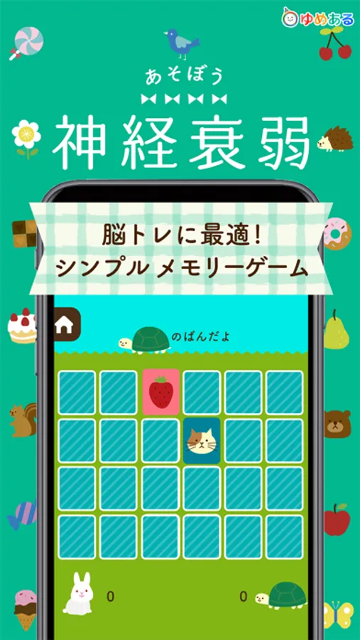 とっても可愛い絵柄の神経衰弱のシンプル対戦ゲームです。
