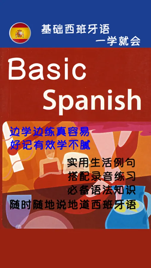 有声教程与《基础西班牙语(上、下册)》原版教材同步,由低到高,让你三个月内“语”惊四座,简简单单学西班牙语,走遍西班牙都不怕,第一套零压力自学系列教材!