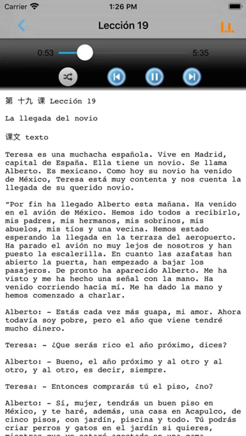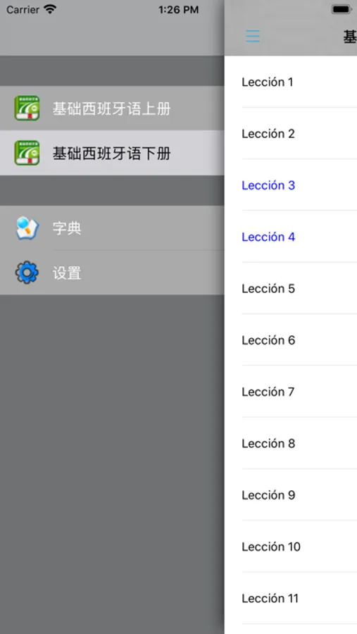 上册每课由课文、对话、日常用语、常用词汇等部分组成。上册原版教材共20课,词汇900余个。本应用共20课内容,介绍西班牙语基础语法和常用词汇。