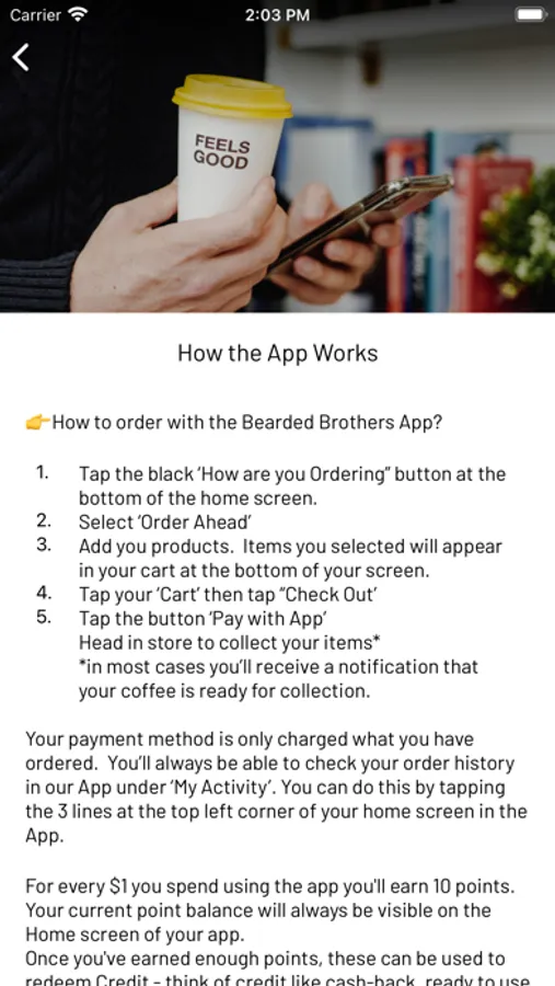 The Bearded Brothers Espresso app will make the most of your in-store experience, allowing you to pay through your mobile via