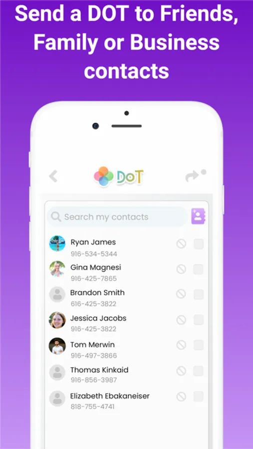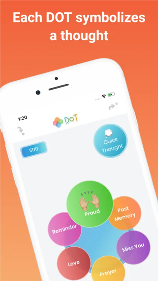 DOT is much like a poking system. Let friends, family, and people in need know that you are thinking about them with a quick selection of a Dot. Sending Dots will save you time communicating while letting somone know you are genuinely thinking of them.
