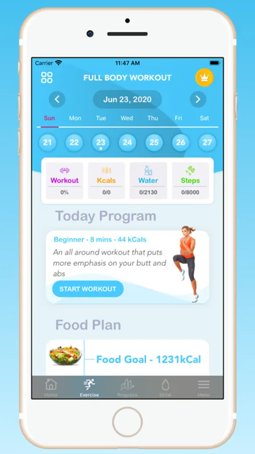 The workout plan contains full body, abs, arms, butt, abdominal and leg workouts to help you lose your extra weight and shape your body. With animations and video guidance, you can make sure you use the right form during every exercise. There's no equipment needed, so you can easily do your workouts at home or anywhere at any time.
