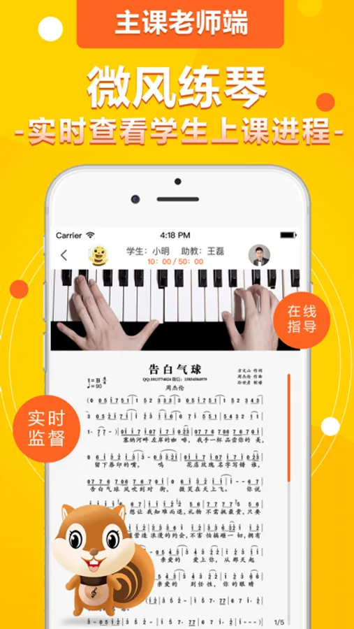 微风音乐练琴平台(主课端)主要包括以下功能:
