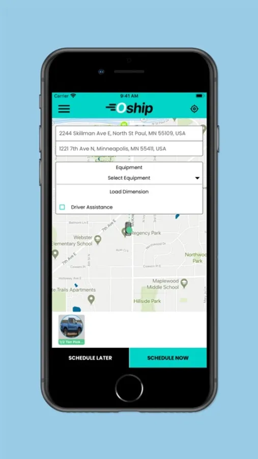 Oship Driver and User Apps book, track, quote, and accept payment for on-demand or scheduled pick-up and deliveries.