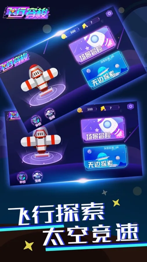 2、游戏分为场景冒险和无边探索两种模式,场景冒险可解锁更多奇妙场景,无边探索可不断挑战自己的飞行记录