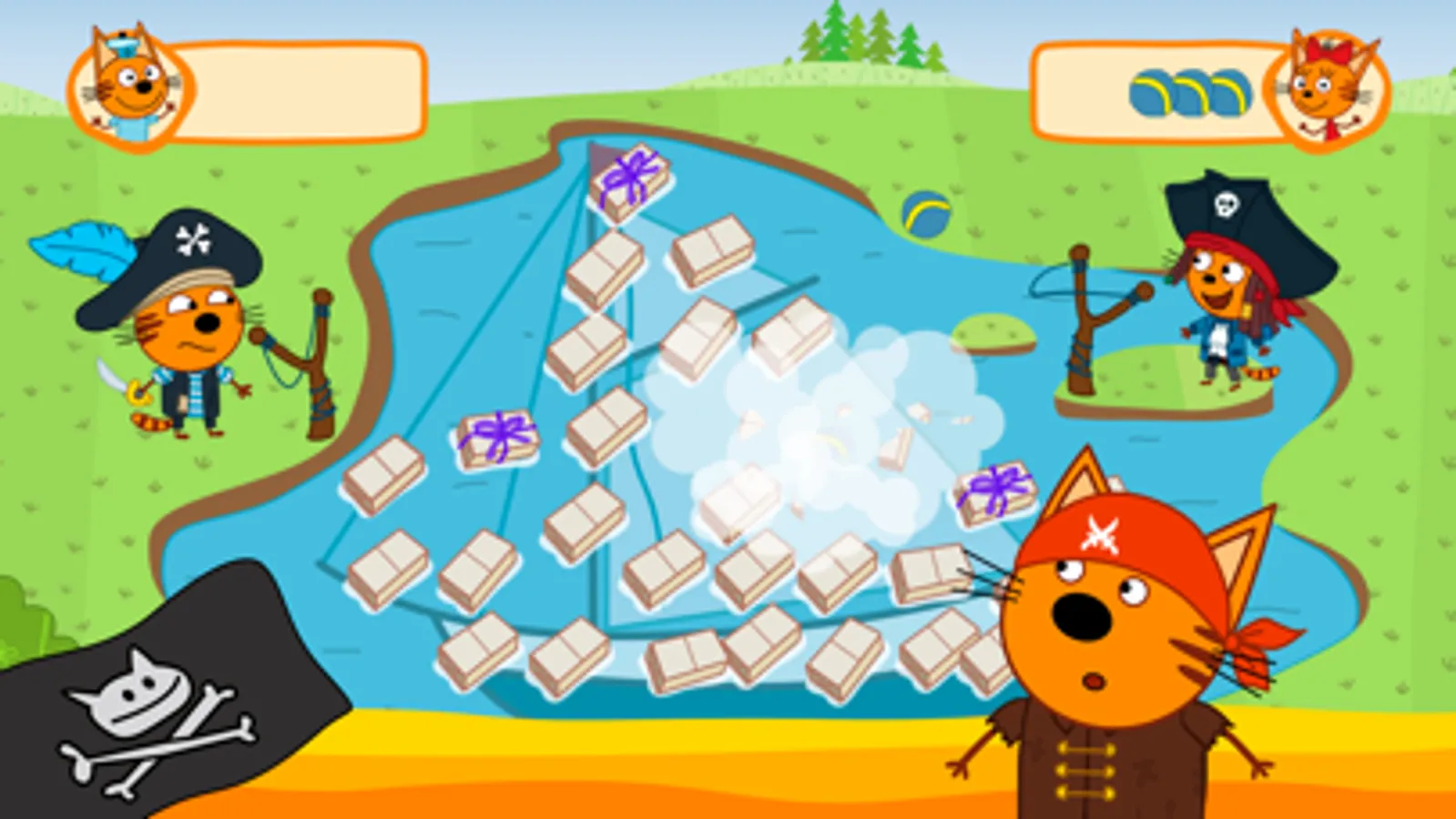 Funny kittens invite everybody to an exciting trip with treasure islands and adventures! Who is the best treasure hunter? Let's find it out! Choose a ship and let's start our trip to the famous pirate gold! Visit deserted islands and bays with sunken treasures. Hurry up! Other treasure hunters are on their way too. Become the best and most famous treasure hunter ever!