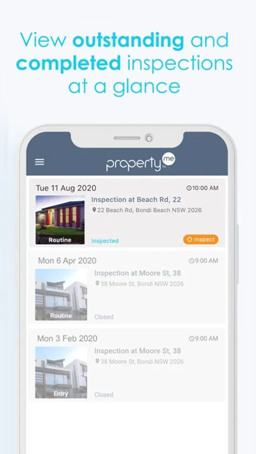 Your property manager will invite you to complete an inspection. Then, simply login using your PropertyMe tenant access account. If you do not have an account, or if you have questions about how to use InspectMe, please contact your property manager.