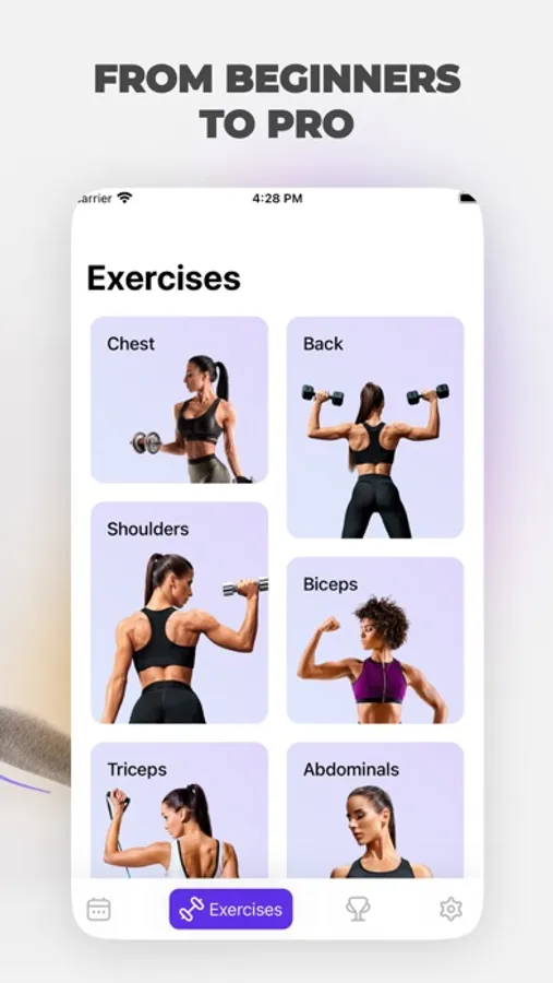 • Library of exercises for women for different muscle groups.