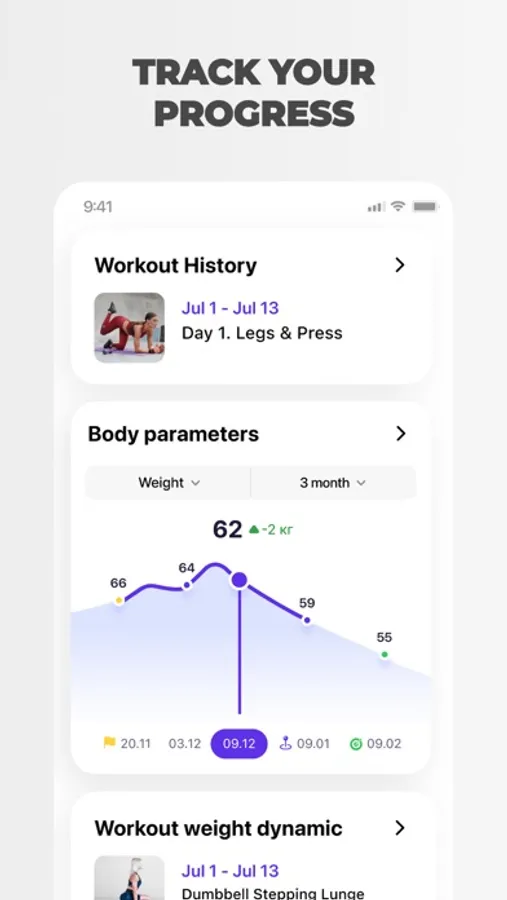 • Create a personal training plan using the large library of exercises for different muscle groups.