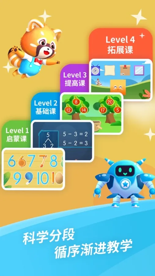 4、科学分段:依据幼儿各年龄段数学教育目标和儿童身心发展规律,对数学思维课程进行进阶式科学分段,循序渐进满足不同年龄段儿童的数学思维启蒙、基础知识巩固和思维能力提高等需求,在边学边玩中掌握数学思维知识和方法。