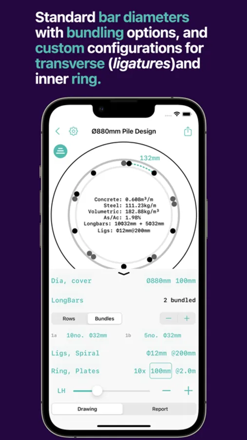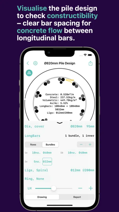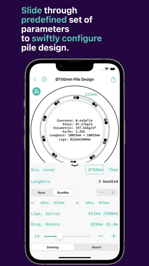 * Slide through predefined set of parameters to swiftly configure pile section.