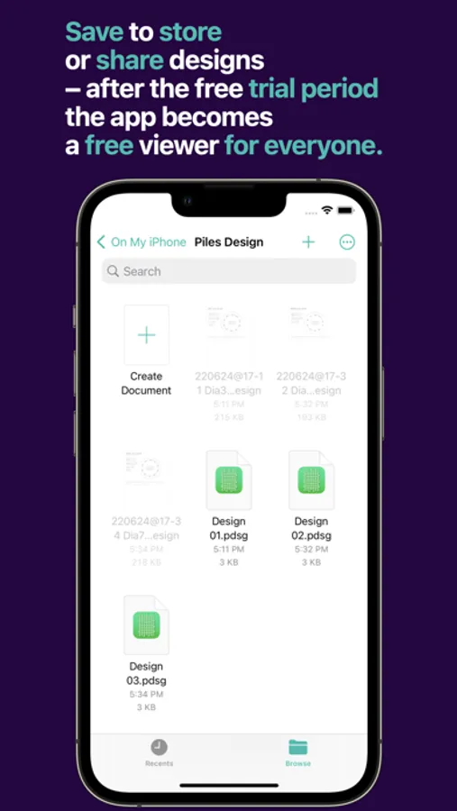 * Save to store or share pile designs – after the free trial period the app becomes a free viewer for everyone.