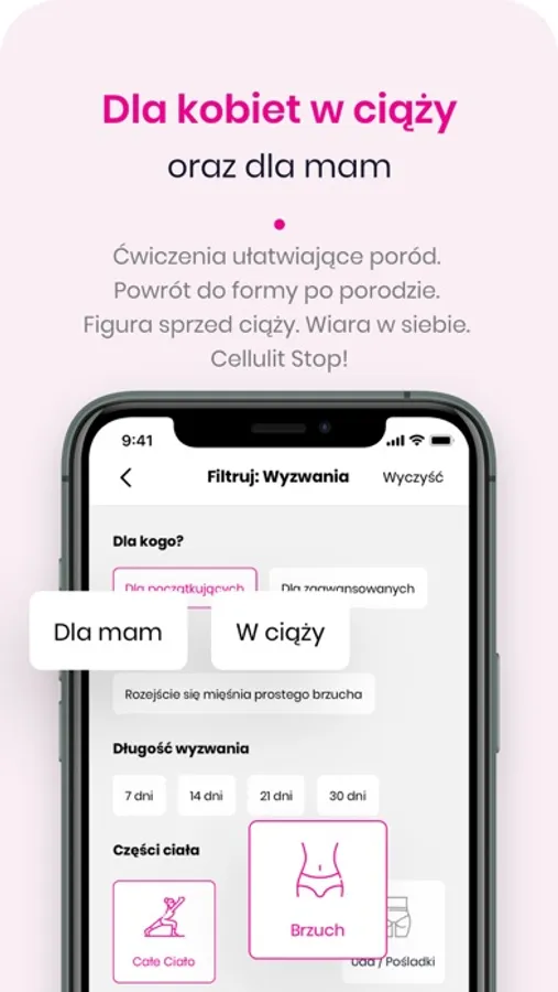 • Ćwiczenia przyjazne dla kobiet w ciąży, mam oraz osób początkujących jak i otyłych.