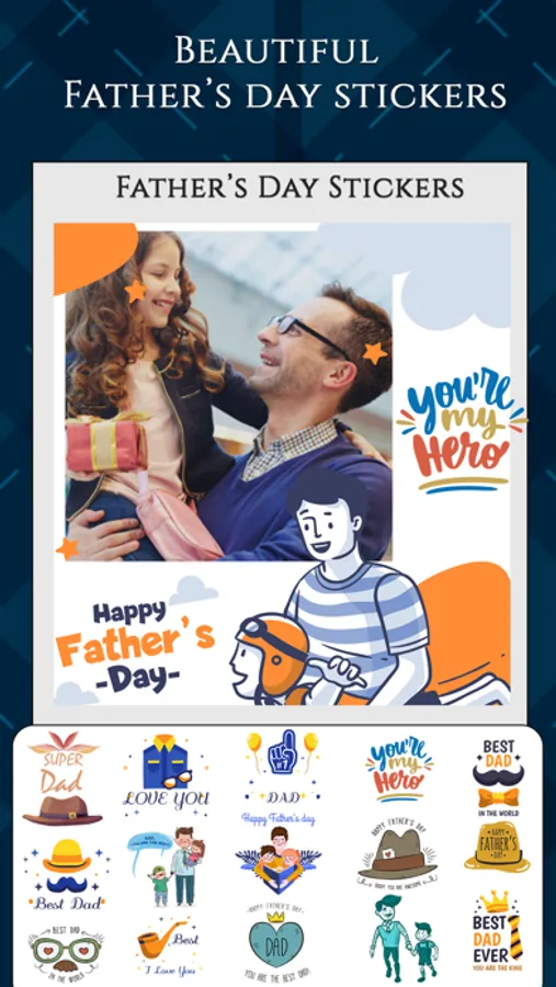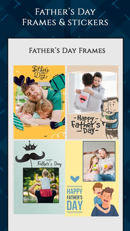 Father’s Day greeting card Photo Frames is a collection of many lovely photo frames for you to decorating your lovely photos. It has the same function as the Love Photo Frames, Birthday Photo Frames and other apps.