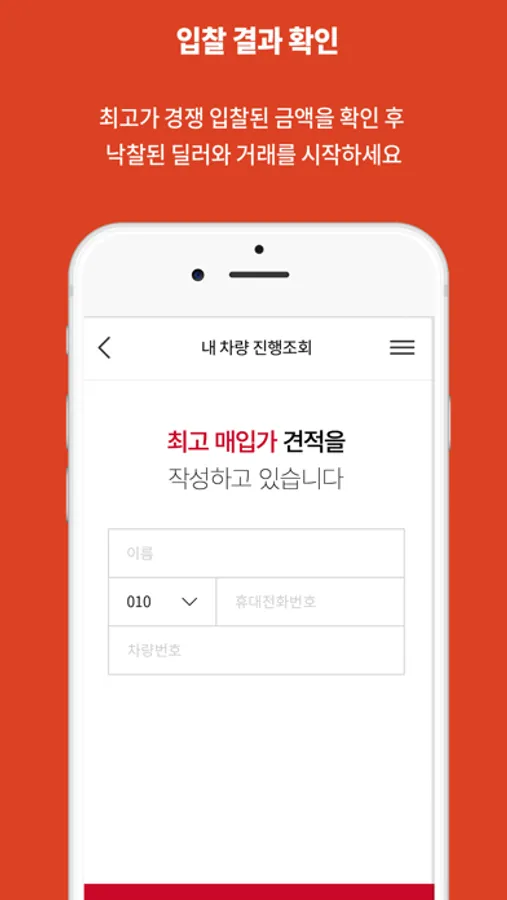 최고가 경쟁 입찰된 금액을 확인 후 낙찰된 딜러와 거래를 시작하세요
