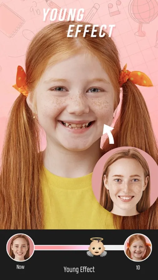 Go back to your 18 years old. And get rid of your wrinkles and have a smooth skin. Young effect makes you look fresh and flawless. Get 10 years younger now with the legendary young camera filter!