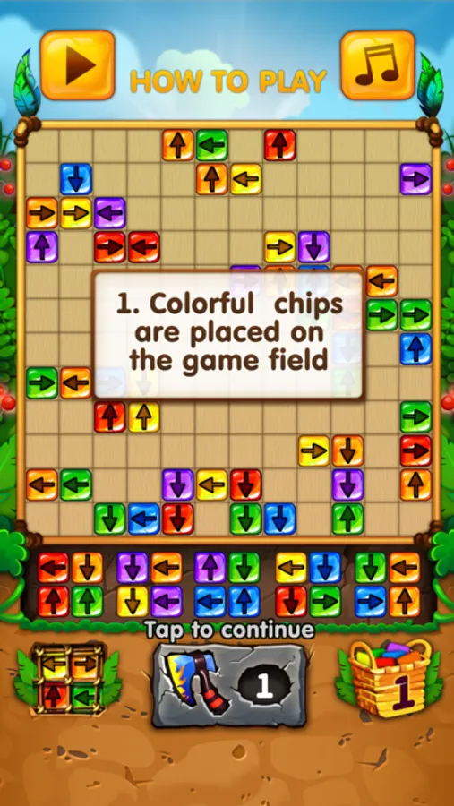 Arrows: colored game is an exciting puzzle game that will help you pass the time! Put the blocks of the chips on the game field in order to match three or more chips of the same color as the result of moving the chips in their arrows directions. You will earn a scores for such combinations and clear the field for the next moves. Imagine the direction of every arrow's flight before making your next move and act!