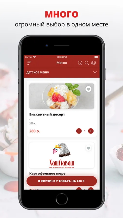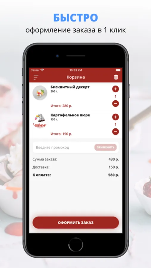 Скачивайте наше приложение, оформляйте заказ и наслаждайтесь любимой едой, где бы Вы ни были! Приятного аппетита!
