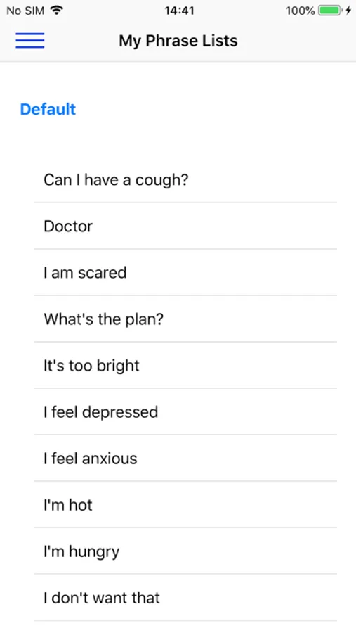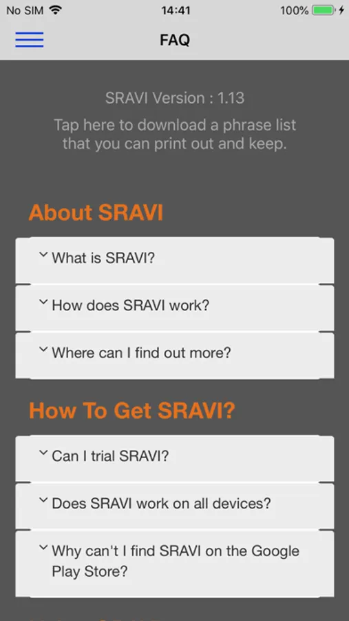 SRAVI can be customised to add additional phrase lists created by the user, and switching between phrase lists is simple.