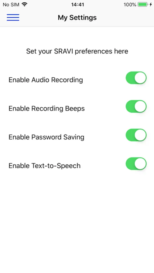 SRAVI will record a video of your face for the purpose of lip reading only. SRAVI will only record video when you press the record button on the 'Read My Lips' screen.