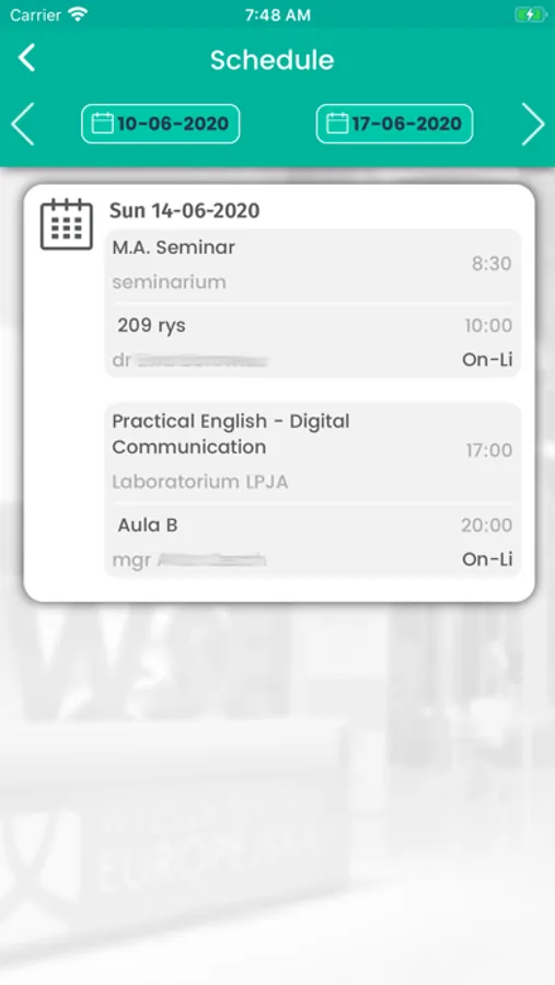 The application uses the same login details as the Virtual University, to facilitate logging in, the user can shorten the login process using biometric data or through a user-defined pin code.