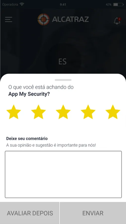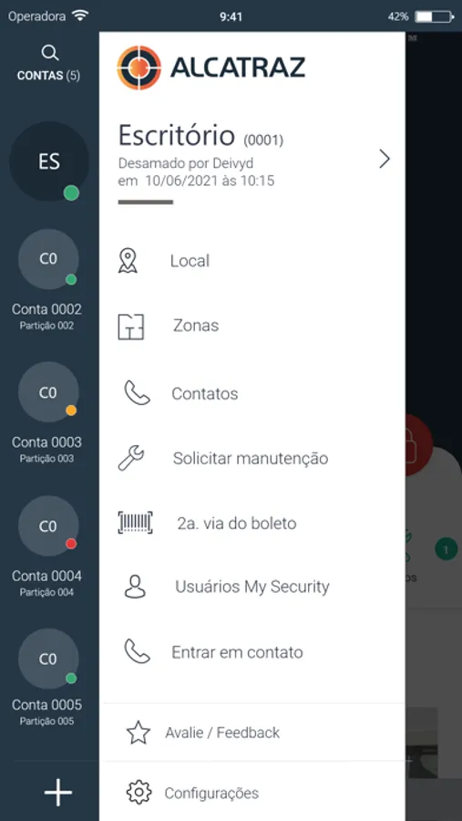 O aplicativo móvel Alcatraz Segurança permite ao cliente monitorado acompanhar diretamente via celular ou tablet todas as atividades do seu sistema de segurança. Por meio do aplicativo, é possível saber o status do painel de alarme, armá-lo e desarmá-lo, visualizar as câmeras ao vivo, verificar eventos e ordens de serviço abertas, além de realizar chamadas telefônicas para contatos cadastrados no seu perfil. É a segurança que você precisa na palma da sua mão.