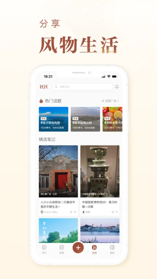 * 风物社区:和大家一起聊一聊那些可爱城市的小吃特产、念念不忘的美好风景、独特的非遗技艺······记录你的风物生活,分享点滴美好~